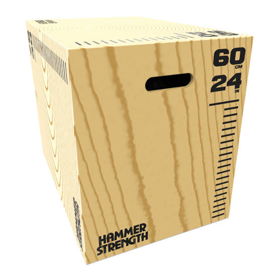 Create an explosive gym routine with this 3-in-1 Wood Plyobox. This Plyometric Box can easily flip to three different training heights.